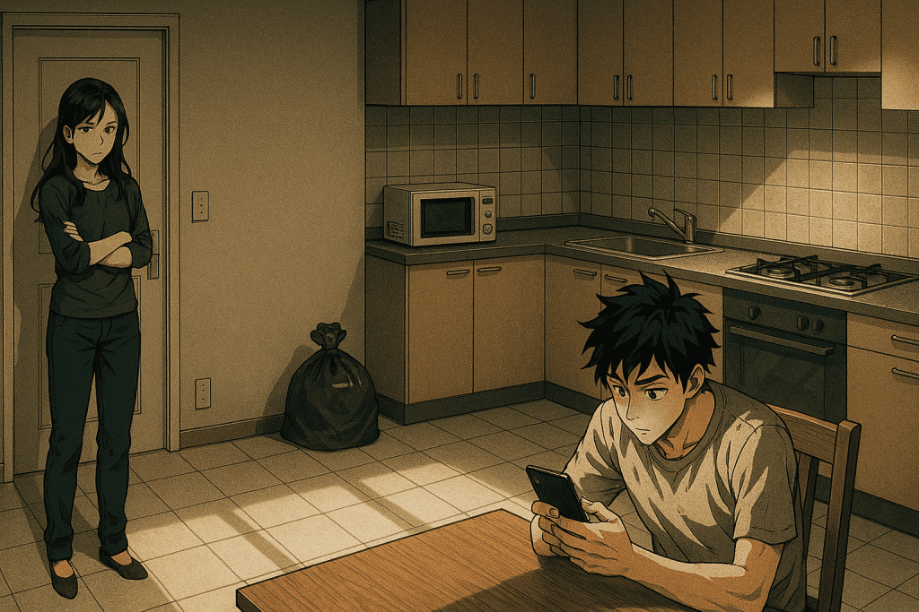 Revenons à la scène de départ. Même cuisine. Même sac poubelle. Même silence. Mais cette fois, quelque chose a changé.